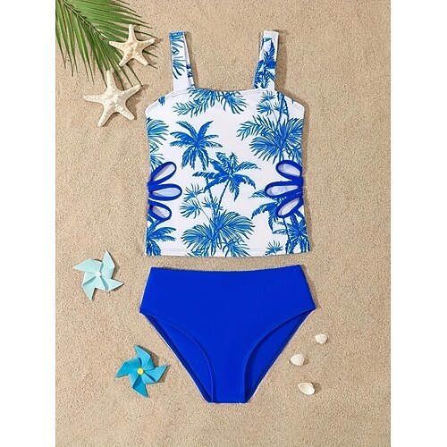 Bambini Ragazze Costume da bagno All'aperto Spiaggia Grafico Foglia Vacanza Tropicale Sport Traforato Costumi da bagno Dai 4 anni in su Estate Bianco e nero Nero