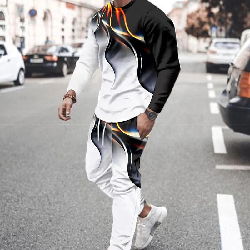 Men's Graphic science and technology 2pcs 3D Sweatshirt Sets Tracksuit Long Sleeve Long pants Crew Neck Streetwear Sportswear Basic Sports Outdoor Casual Sports Print Spring Fall Black Blue Green
