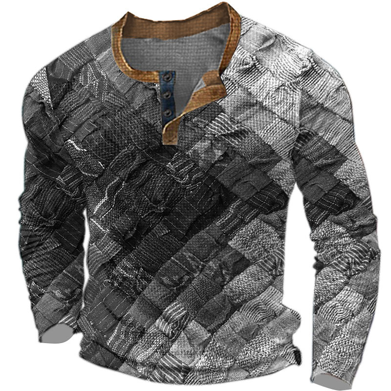 Men's Graphic Patchwork Henley Shirt Waffle T Shirt Long Sleeve 3D Print Fashion Designer Casual Sports Outdoor Holiday Festival Spring Fall Blue Brown Green Gray Henley Henley T-Shirt