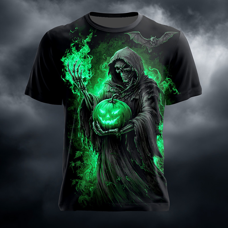 Halloween Men's Pumpkin Reaper T Shirt Short Sleeve T shirt 3D Print Crew Neck Shirt Exaggerated Designer Horror Party Street Holiday Blue Orange Green Summer Spring All Seasons Clothing Apparel S M