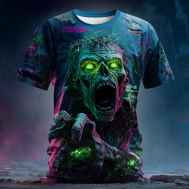 Halloween Men's Optical Illusion Zombies 3D T Shirt Short Sleeve T shirt 3D Print Crew Neck Shirt Exaggerated Designer Horror Party Street Holiday Blue Purple Green Summer Spring All Seasons Clothing