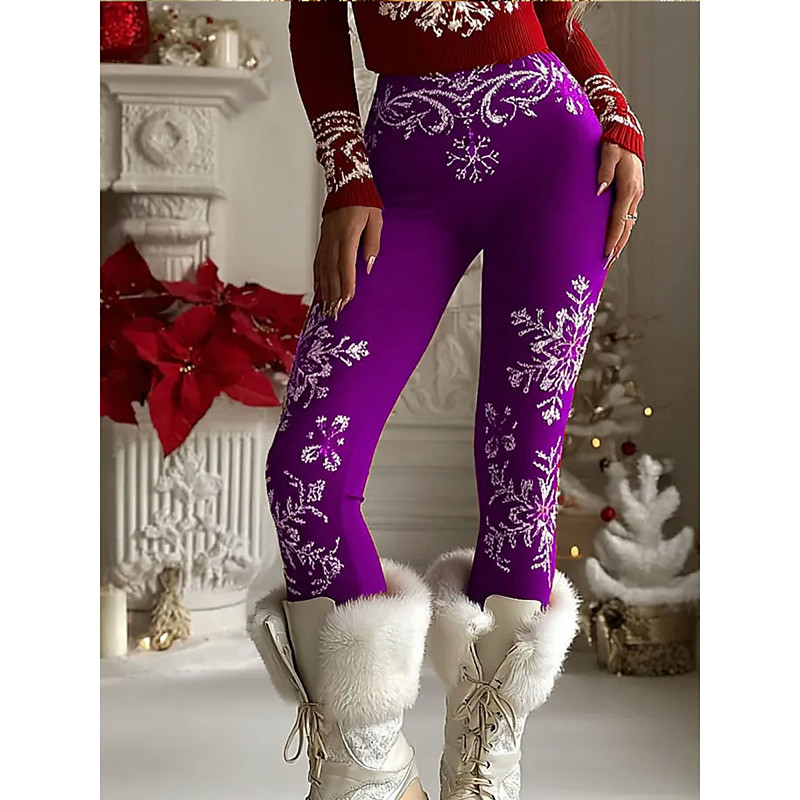 Women's Leggings Vacation Vintage Ethnic Style Full Length High WaistPantsUgly Christmas Graphic Snowflake 3D Print Quick Dry Breathability Soft Stretchy Outdoor Home Causal Red Blue Purple Green
