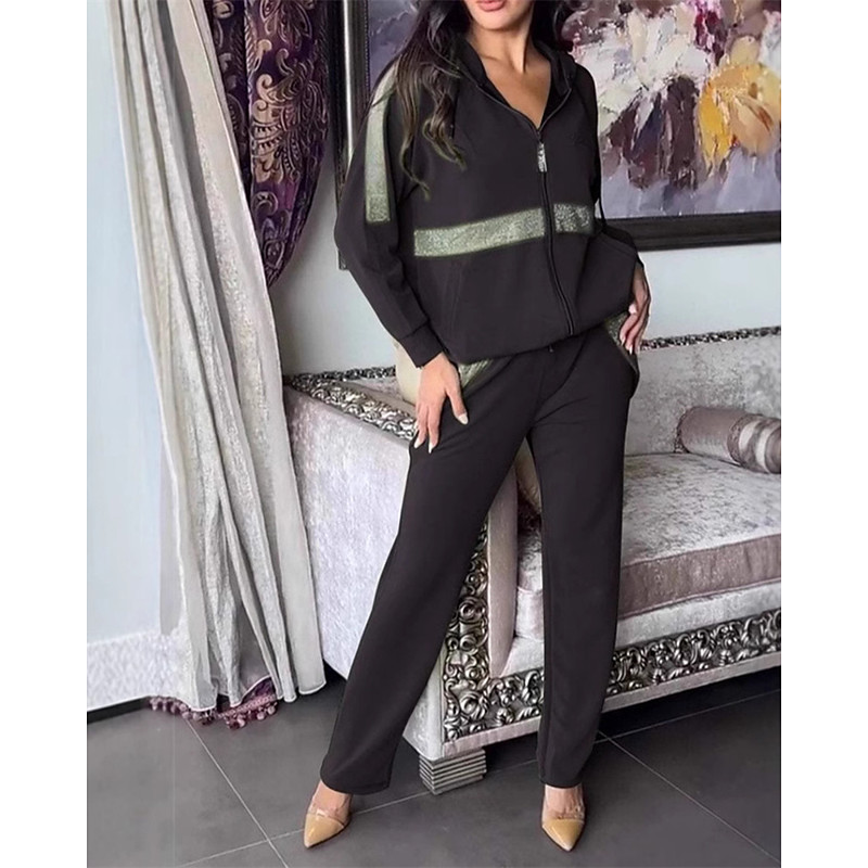 Women's Fashion Streetwear Hoodie Pants Sets Bolero Top Long Sleeve Hooded Color Block Patchwork Zipper Vacation Casual Daily Black Red Blue Spring Regular Fit