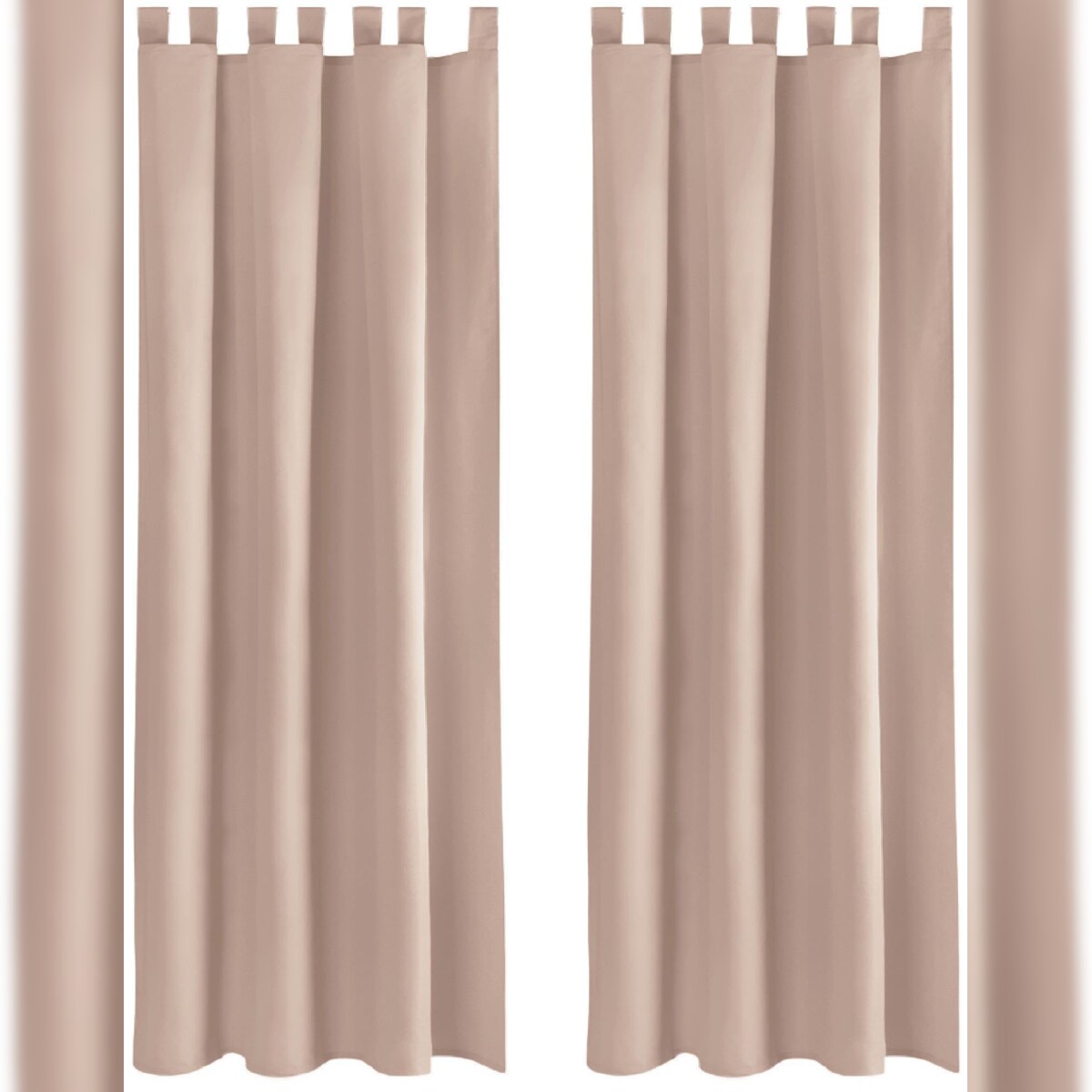 Bestlivings 2er Set Dekoschal Ellen,Schlaufe, inkl. Raffhalter & Haken 140 x 145 cm sandgrau - beigegrau