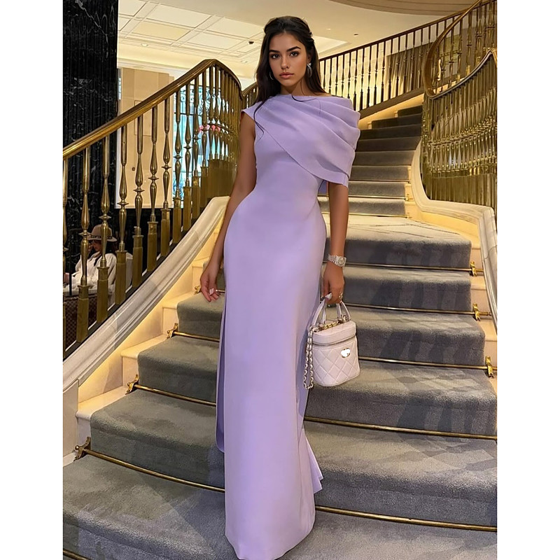 Sheath Column Floor Length Prom Dresses Evening Gown Ball Gown Formal Dress Elegant High Split Side Slit Short Sleeve Crew Neck Formal Stretch Crepe with Ruched Shawl