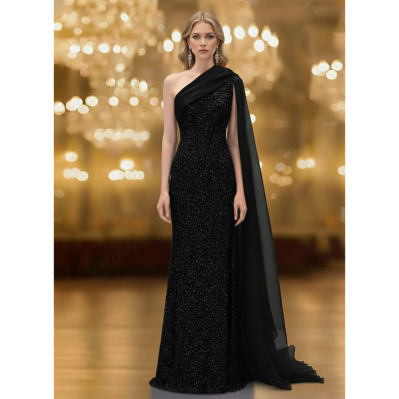 Mermaid Trumpet Sweep Brush Train Prom Dresses Evening Gown Ball Gown Formal Dress Elegant Glittering Sparkle Sleeveless One Shoulder Wedding Formal Organza Sequined with Glitter