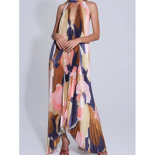 Per donna Abito maxi Vestito a ruota Abito Floreale Abito con Collo Allacciato Elegante Moda Moderno All'aperto Vacanza Feste Vestibilità comoda Floreale Senza Maniche All'americana Arancione Marrone