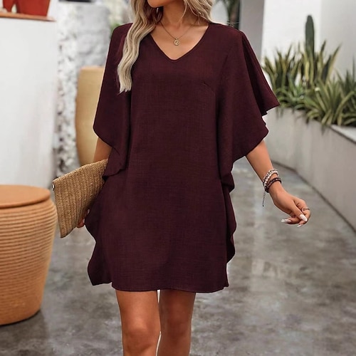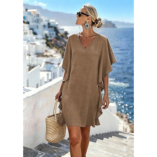 Per donna Abito Midi 100% cotone Abito in cotone e lino Moda Moderno Vacanza Ferie Uscire Vestibilità comoda Semplice Manica Corta Scollo a V Bianco Rosa Verde Azzurro Estate Primavera
