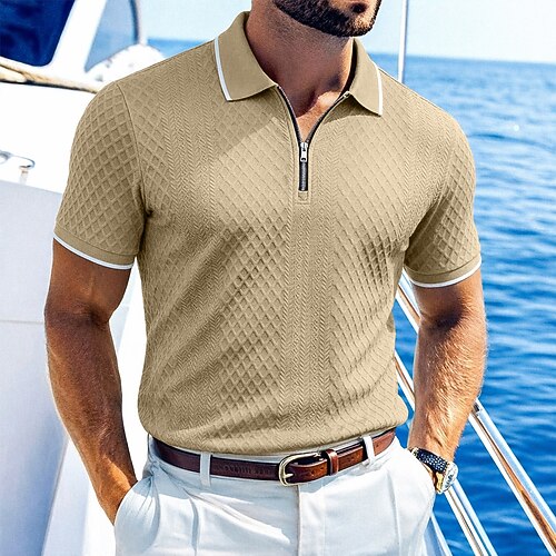 Per uomo Polo Testurizzato Casuale Streetwear Bavero Manica Corta Essenziale Moderno Geometrico Semplice Leggero Bottoni Estate Primavera Vestibilità comoda Nero Bianco Vino Blu marino Verde scuro