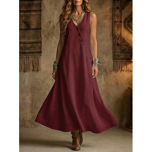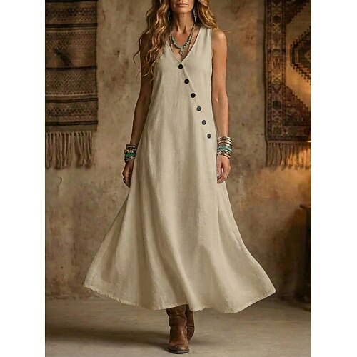 Per donna Abito maxi Vestito Casual Abito in cotone Vestito Canotta Elegante Moda Moderno All'aperto Vacanza Uscire Vestibilità comoda Semplice Senza Maniche Scollo a V Blu Nero Bianco Giallo Estate