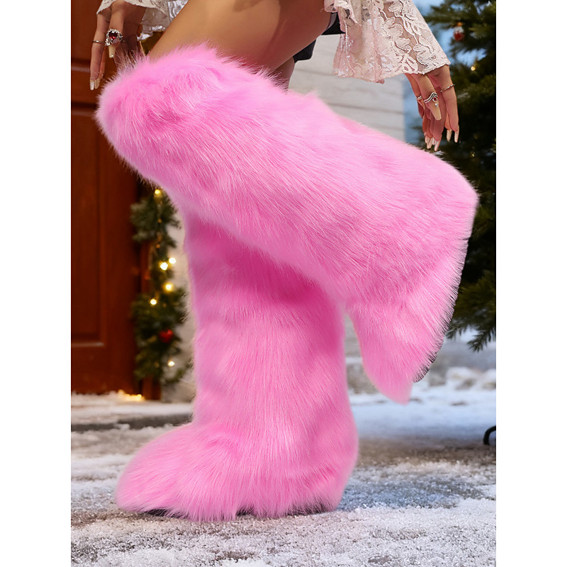 Women's Faux Fur Knee-High Boots – Black and White Print, Cozy Winter Footwear for Fashion-Forward Cold Weather Holiday Style