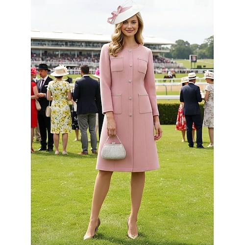 Abito tubino lunghezza ginocchio abito da festa abito da cocktail abito da invitata al matrimonio abito per la madre della sposa manica lunga collo a giro elegante vintage festa formale con bottoni