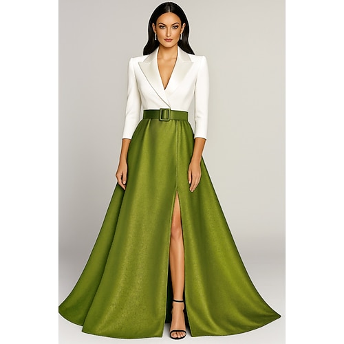 Per donna Abito da smoking Linea ad A Matrimonio Formale Ospite di nozze Raso Tessuto elasticizzato a 4 vie Elegante Scintillante Manica 3/4 Lunghezza al pavimento Colletto a Camicia Cerniera