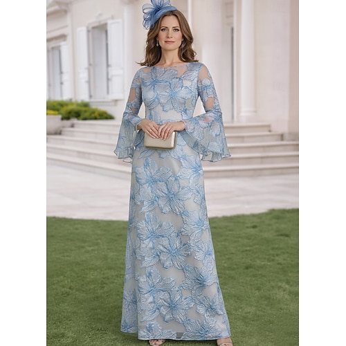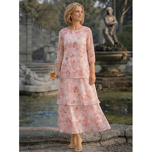 Linea ad A Lunghezza al pavimento Lunghezza alla caviglia Abito Formale Abito da cerimonia per signora Manica 3/4 Scollo a Barca Elegante Vintage Casual Formale Chiffon Jacquard con Stampa floreale