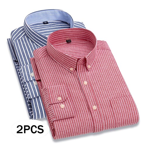 Per uomo Camicia Camicia elegante Camicia button-down Camicia Oxford A righe Quotidiano Affari BluBlu chiaro Rosso grigio Azzurro grigio Viola Blu Manica Lunga Collo ripiegato Tutte le stagioni