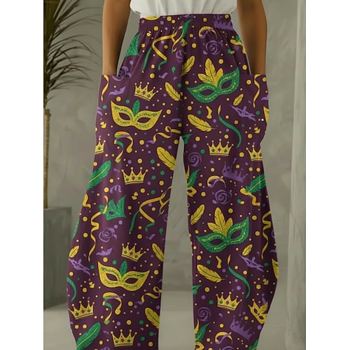 Karnevalshose für Damen, weit geschnitten, im Vintage- und Ethno-Stil, lange Hose mit hohem Bund, Grafikprint, Kordelzug, Tasche, elastischem Bund, bequem, atmungsaktiv, dehnbar, lässig, für jeden Tag
