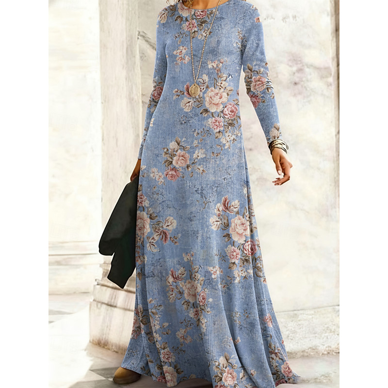 Women's Long Dress Maxi Dress Casual Dress Swing Dress Boho Dress Vintage Daily Outdoor Weekend Regular Fit Floral Long Sleeve Crew Neck Blue Spring Fall Winter
