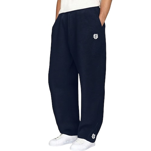 Herren Jogginghose Jogginghose mit weitem Bein Hose Jogginghose mit offenem Saum Kordelzug Bestickt Elastischer Bund Einfach Atmungsaktiv Volle Länge Sport im Freien Lässig Täglich Mode Klassicher