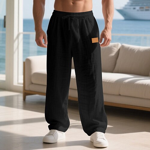 Per uomo Pantaloni di Lino Pantaloni Pantaloni Estivi Pantaloni da Spiaggia Coulisse Tasca Elastico in vita Semplice Quotidiano Abbigliamento casual alla moda Moda Casual Nero Bianco