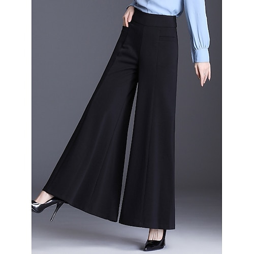 Per donna Gamba larga Chinos Elegante Vacanza Moda Lunghezza intera Vita Alta Semplice Tasca Fascia Elastica Comodo Comodità Morbido Micro-elastico Quotidiano All'aperto Affari Vinaccia Nero