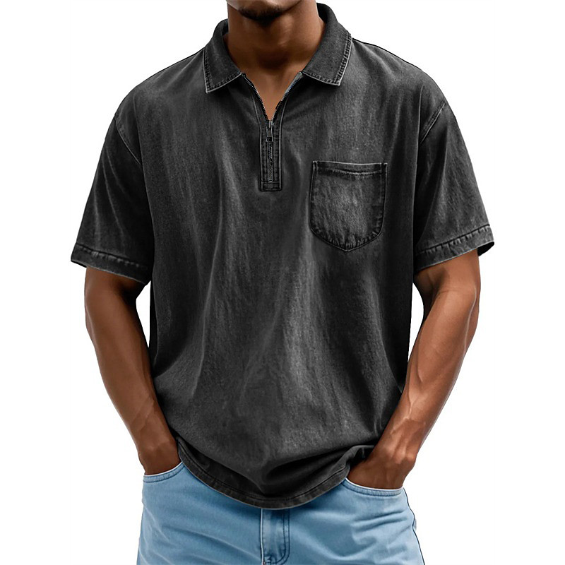 Men's Graphic Zip Polo Shirts Golf Shirt Short Sleeve Polo Shirts Collared Shirts Casual Vacation Wear Rave Wear Party Outfits 3D Print Quarter Zip Polo Sea Blue Red Blue