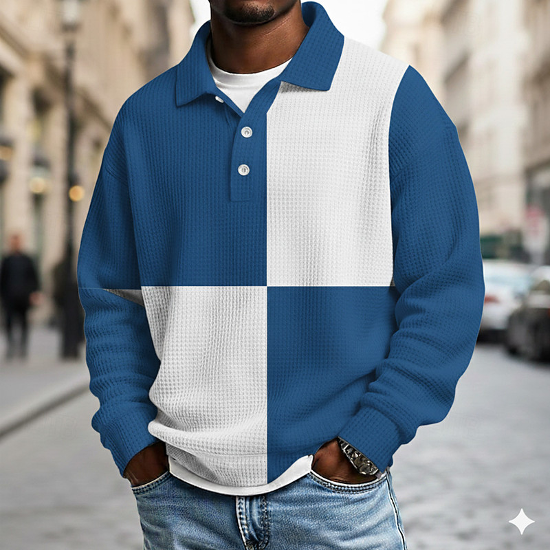 Herren Farbblock Polo Langarm Polo-Shirts Revers Lässig Schule Athleisure Alltagskleidung 3D-Druck Frühling Herbst Blau Grün Schwarz-Weiß