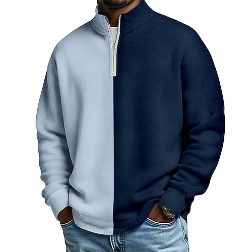Per uomo Blocco di colori Polo con zip Manica Lunga Magliette polo Colletto alla coreana Casual Scuola Athleisure Ferie Abbigliamento quotidiano Stampa 3D Polo con cerniera a un quarto Primavera