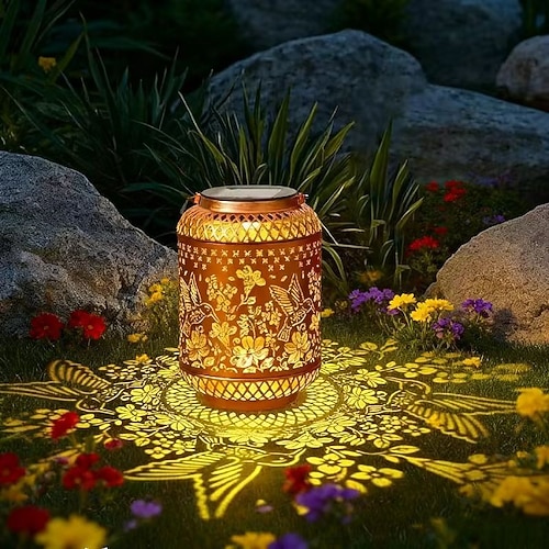 Solarbetriebene Kolibri-Projektionslaterne aus Metall für den Außenbereich, wasserdicht (IP44), dekorative LED-Hängeleuchte für Garten, Terrasse, Hof, Wege, Rasen, Veranda und Feiertage