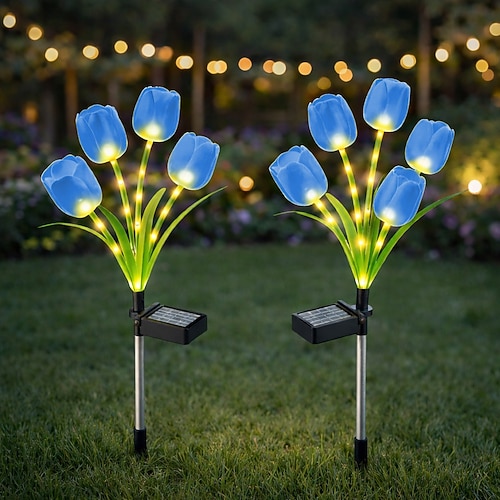 2 Stück wasserdichte LED-Tulpenleuchten mit Solarbetrieb (IP65) für den Außenbereich, 4-flammig, dekorativ für Garten, Hof, Rasen, Wege, Blumenbeete und als stimmungsvolle Landschaftsbeleuchtung für