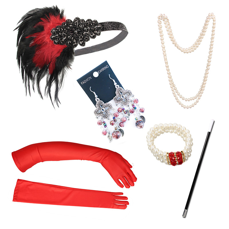 Set Retro Vintage Roaring 20s 1920s Flapper Headband Headwear Accessories Set The Great Gatsby Flapper Girl Feather Fancy Dress Women's Christmas Carnival Masquerade Retro Theme Party Charleston Dance