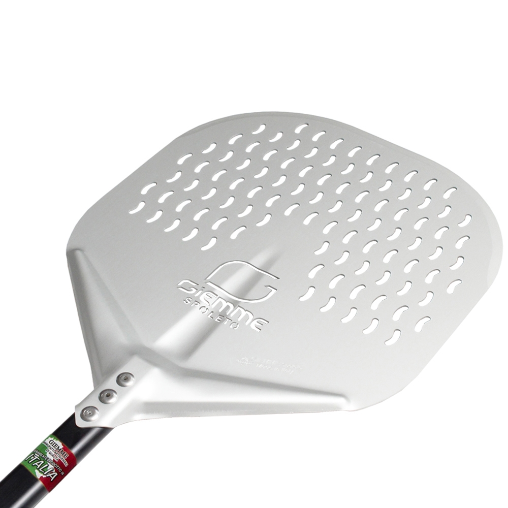 Giemme Spoleto - Rechteckige Pizzaschaufel aus eloxiertem Aluminium, Blatt 33 cm, roter Griff 90 cm, Gesamtlänge 130 cm