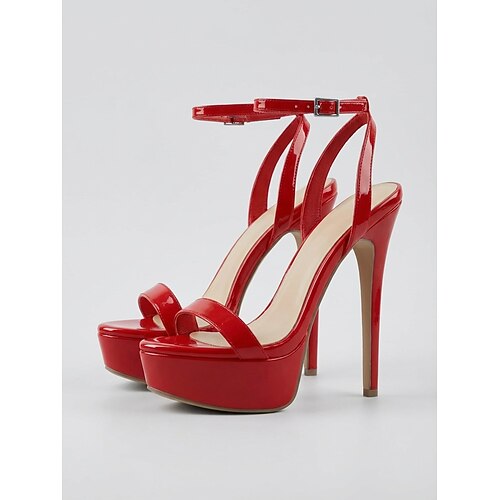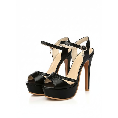 sandali con plateau in vernice nera con cinturini alla caviglia con lacci – scarpe sexy con tacco alto da donna per club e ballo