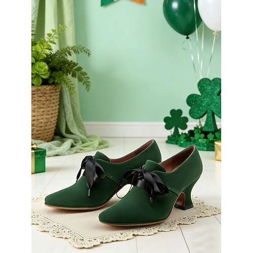 décolleté da donna con punta a punta verde scuro: eleganti scarpe da sera in stile vittoriano con fiocco in raso per le feste di San Patrizio e altri eventi fortunati