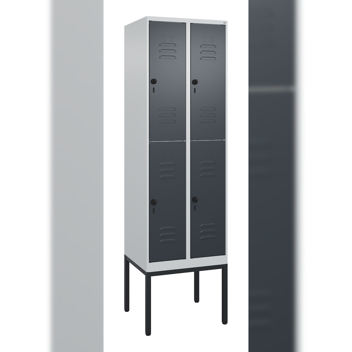 C+P Schwarz-Weiß-Spind Classic PLUS, Füße, 4 Abteile, 1950x1200x500mm, 7016/7035