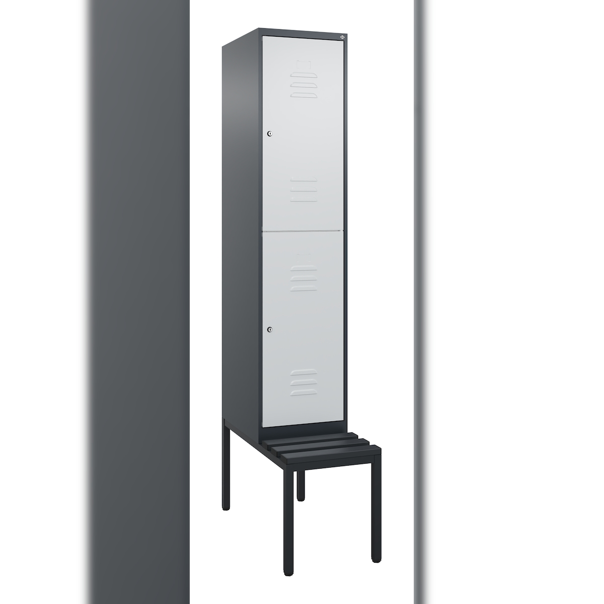 C+P Spind Classic PLUS, Kunststoff untergebaute Sitzbank, 2 Abteile, HxBxT 212x40x82cm, Zylinderschloss, Anthrazit/Hellgrau von PROREGAL