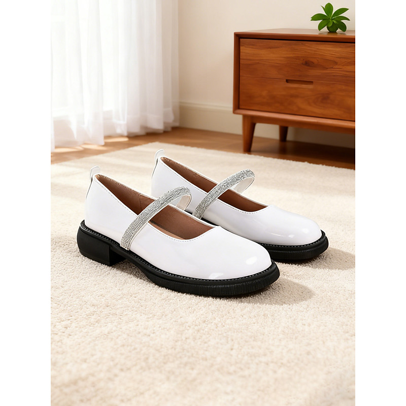 Women's Mary Jane Flats with Glitter Strap – Comfortable Round-Toe Everyday Shoes, Classic Casual Style for Work, School, Shopping Daily Wear