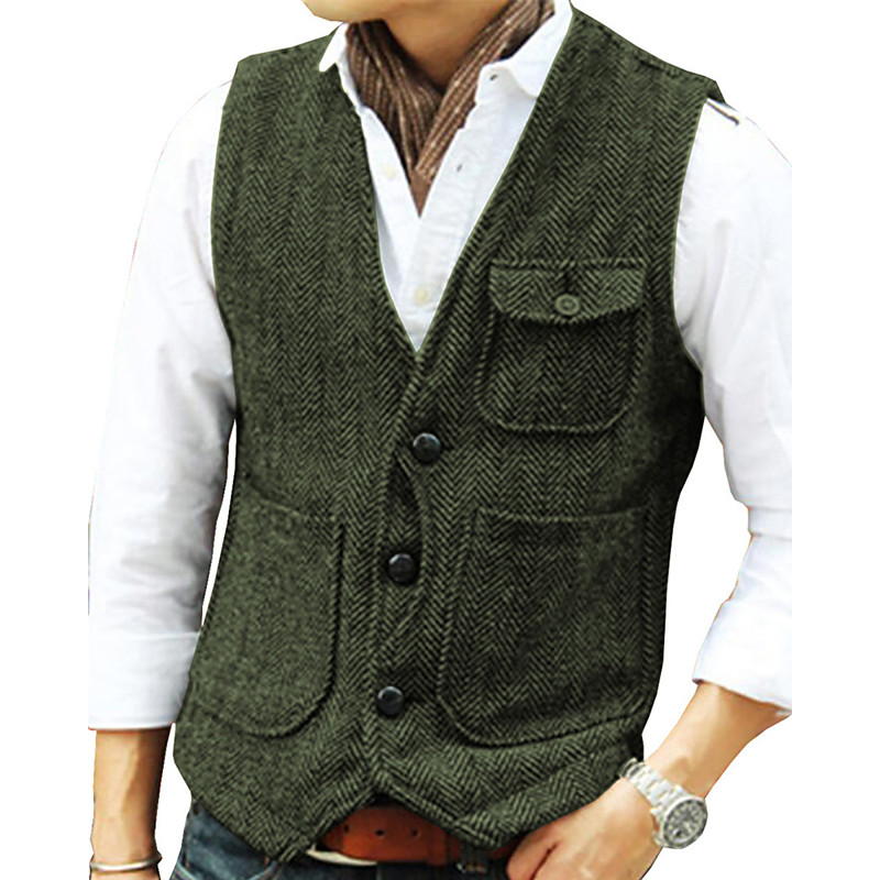 Men's Vest Waistcoat Gilet Vacation Party Business Fashion Casual Spring Fall Pocket Buttons Polyester Comfortable Plain Single Breasted One-button Lapel Regular Fit Black Green Khaki Light Grey Vest