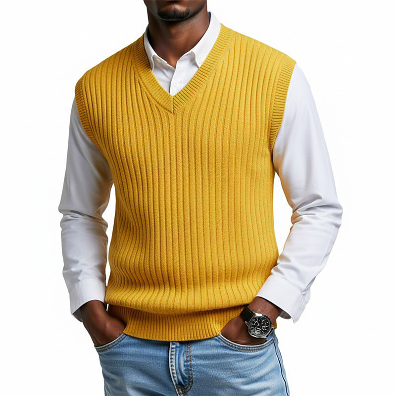 Men's Sweater Vest Dress Sweater Pullover Sweater Jumper Vest Knit Sweater Ribbed Knit Regular Tops Knitted Plain V Neck Fashion Streetwear Vacation Business Clothing Apparel Sleeveless Fall Winter