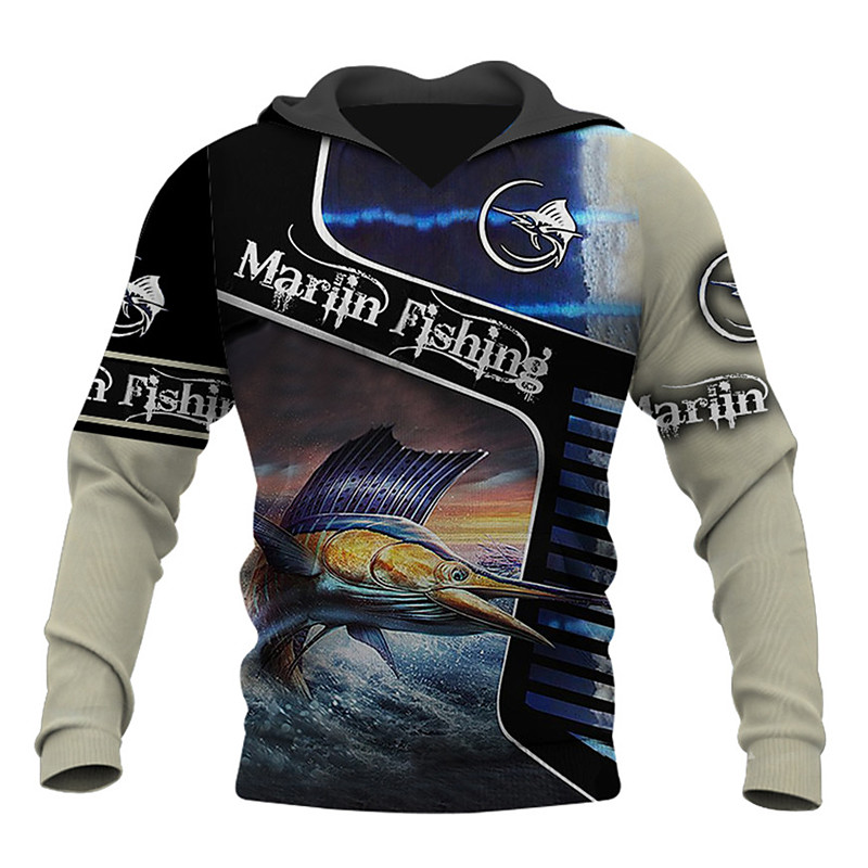 Men's Graphic Animal Fish Hoodie Hoodies Sweatshirt Streetwear Designer Casual Big and Tall Long Sleeve Hooded Sports Outdoor Daily Light Khaki. Black Royal Blue Blue Khaki Print Spring Fall