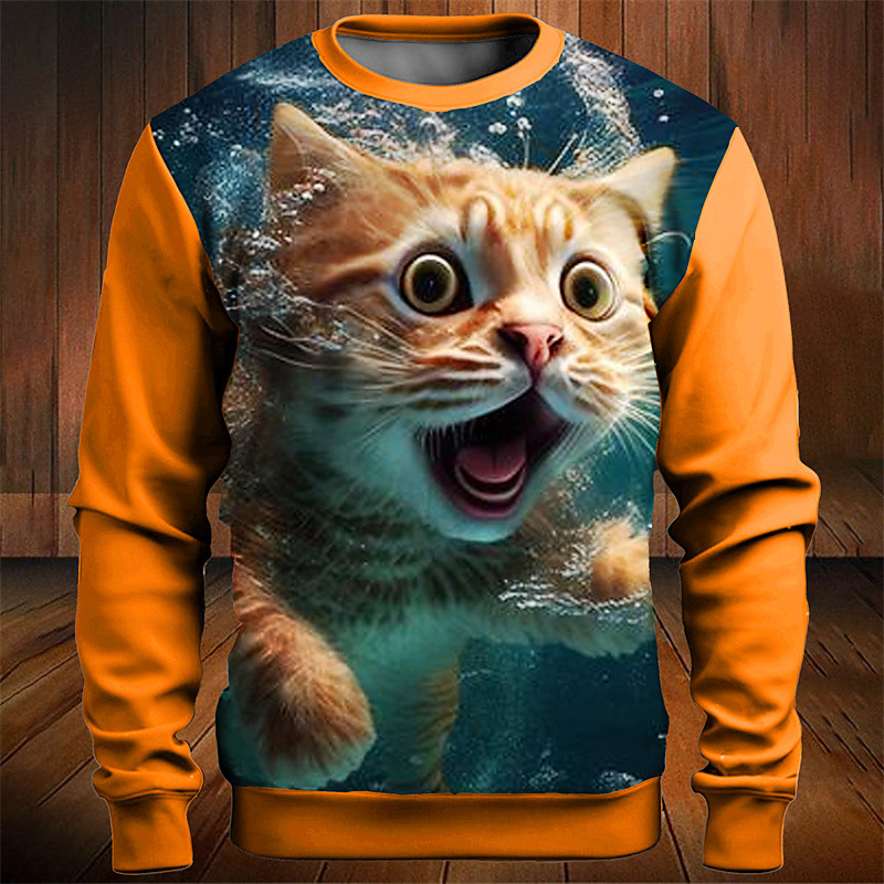 Men's Graphic Color Block Cat Sweatshirts Golf Pullover Sweatshirt Long Sleeve Sweatshirt Crew Neck Fashion Daily Casual 3D Print Vacation Holiday Going out Patchwork Print Spring Fall