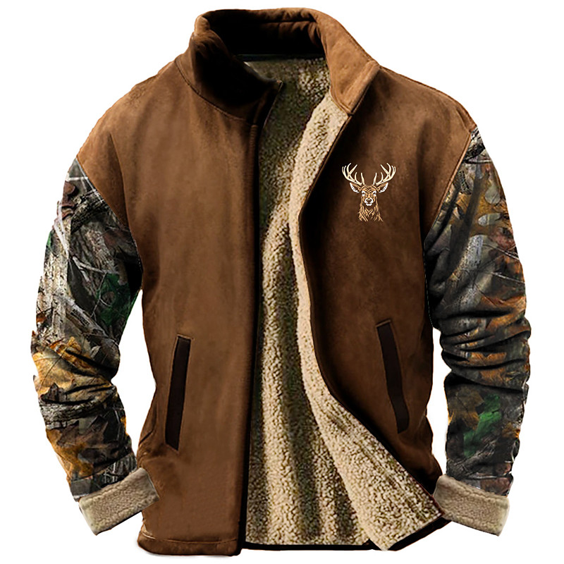 Men's Camo / Camouflage Deer Sweatshirt Sweatshirt Sweatshirt Stand Collar Daily Print Vacation Travel Streetwear Zip Up Fall Winter