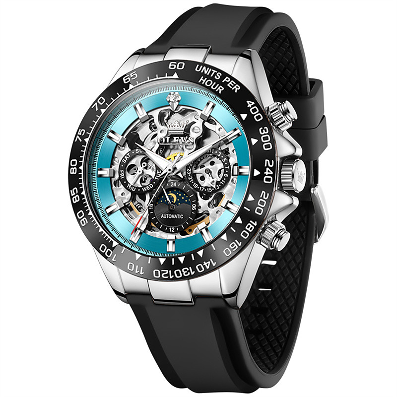 The New Olevs Silicone Men'S Business Watch With Luminous Calendar And Moon Phase Display A Multi-Functional Fully Automatic Mechanical Watch Is A Fashionable Casual Waterproof Sports Wristwatch