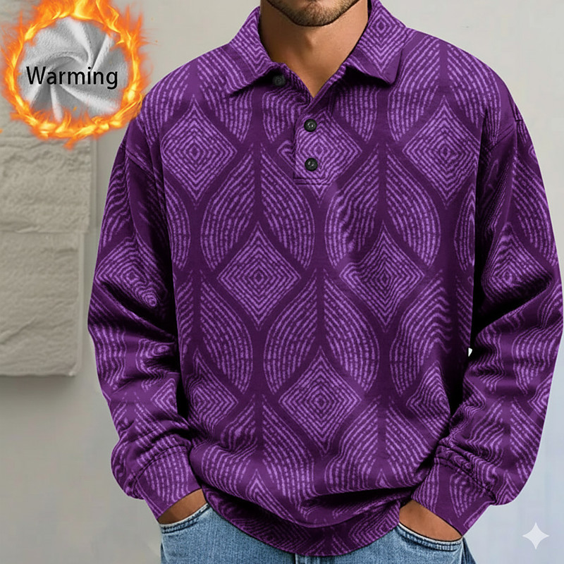 Men's Abstract Geometic Polo Shirts Themmal Shirts Long Sleeve Polo Shirts Lapel Casual Athleisure Holiday Daily Wear 3D Print Fall Winter Blue Purple Brown