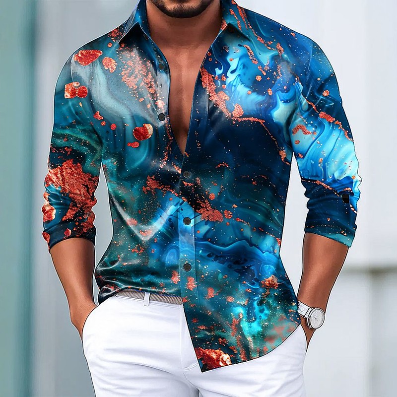 Men's Marble Abstract Art Color-blocking Shirt Satin Shirt Dress Shirt Long Sleeve Fashion Casual Vacation Dailywear Summer Spring Fall Turndown 3D Print Button Up Shirts Blue Purple Green Dark Blue