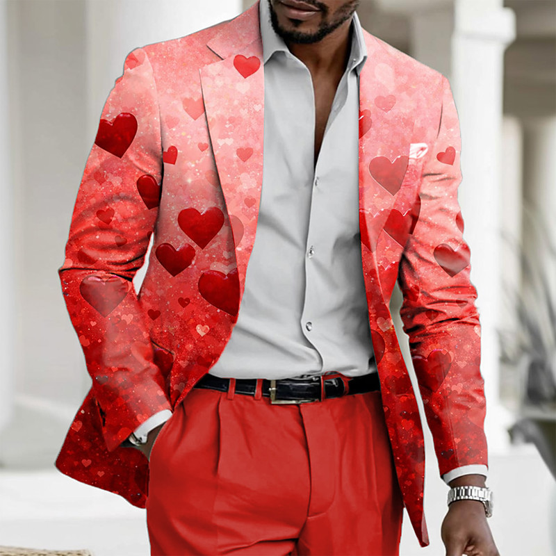 Valentine's Day Men's Heart Blazer Jacket Coat Comfortable Casual Breathable Artistic Casual Daily Party Evening Wear Festival 3D Print Buttons Multi Pocket All Seasons Notch Long Sleeve Pink Red