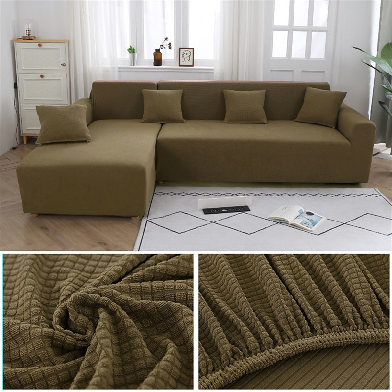 Stretch Sofa Cover Slipcover Jacquard Elastic Sectional Couch Armchair Loveseat 4 or 4 or 3 Seater Burgundy Red L Shape White Grey Black Plain Solid Color Soft Durable Washable(1 Free Cushion Cover)