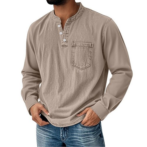 Per uomo Vintage Maglia Henley Camicia 100% cotone lavaggio acido Maglietta Manica Lunga Retrò Vintage Casual Casuale Primavera Autunno Tutte le stagioni Blu Nero Rosa Viola Marrone Henley Maglietta