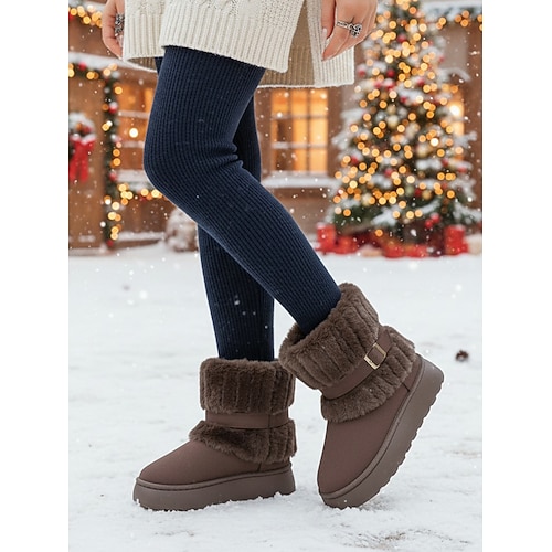 stivali da neve caldi da donna foderati in pelliccia color caffè – stivaletti invernali antiscivolo per attività all'aperto, viaggi, giornate sulla neve e comfort quotidiano