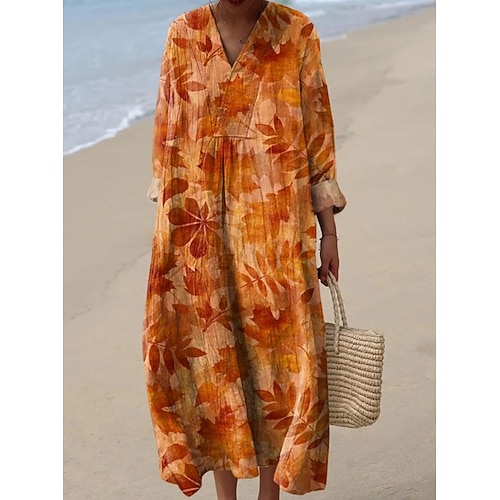 Per donna Abito maxi Finto cotone e lino Vestito a caftano Moda Moderno All'aperto Vacanza Ferie Vestibilità comoda Semplice Manica Lunga Scollo a V Blu Bianco Giallo Estate Primavera Autunno