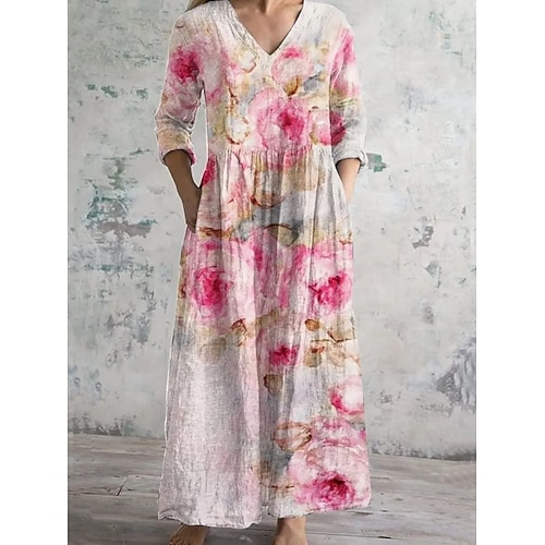 Per donna Abito maxi Vestito Casual Abito Stampato Elegante Vintage Moda All'aperto Vacanza Weekend Vestibilità comoda Floreale Manica Lunga Scollo a V Rosa Estate Primavera
